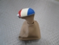 シフトノブはちょっと特殊に!トリコロールを斜めに!風にたなびくフランス国旗をイメージ!こちらは特殊タイプになりますので通常11000円が13000円です。(斜め皮を縫う・貼るは難しいらしい)