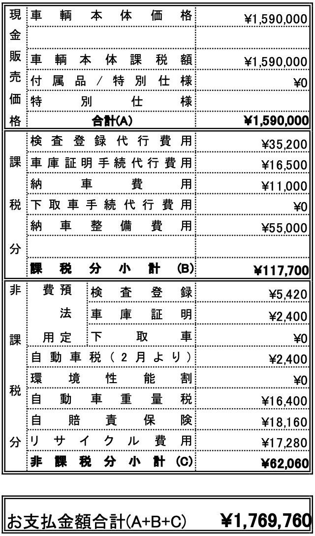 ご購入頂き弊社にて納車整備をご希望されるお客様に関しては、点検整備実施内容一覧に表記してある最大17品目の部品を交換・最大93項目を点検整備してからご納車させて頂きます。詳しくは点検整備実施内容一覧をご確認下さい。