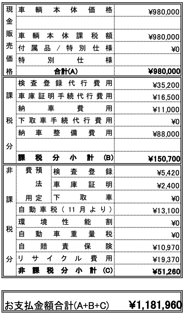 ご購入頂き弊社にて納車整備をご希望されるお客様に関しては、点検整備実施内容一覧に表記してある最大17品目の部品を交換・最大93項目を点検整備してからご納車させて頂きます。詳しくは点検整備実施内容一覧をご確認下さい。
