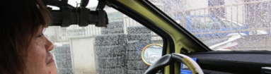 さ〜出発するぞ!と出ようとした途端、レジャンドブルーの呪としか思えない位の大雨が......。(さっきまで晴れてたのに....。)空調の付いてないトゥインゴは窓ガラスが曇る曇る........。昔々は車に必需品だったクリンビューが欲しい!