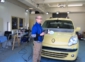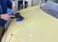 まずはボディ以外の磨かないパーツ(モールやヘッドライト等)にマスキングテープを貼っていきます。(ポリッシャーで傷つけたりし無い為の処置)傷ついたり薬剤が飛び散ったりし無い様に貼り終わったら、ポリッシャーで磨いていきます。まずは粗めのバフ(スポンジの様な物)で怪しい薬剤を塗りつけて磨いていきます。塗装面が熱を持たない様に機械自体もただ単純に回転するだけでは無くのの字を書く様に回転してます。(プロの持ち物は違いますね。ポリッシャーだけでも10点近くお持ちでした。塗装状態によって色々と使い分けするらしい)お〜磨いている箇所が霞みが晴れていく〜!ある程度磨くと今度は目の細かいバフに交換しと何度か磨きを掛けて最後に独自調合したコーティング剤(数種類)を何層にも塗り込んで行きコーティング剤がある程度固まったら出来上がりです!
