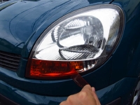 カングー用フロントウィンカーアンバーシールのご紹介です。右の写真のシールをヘッドライトに貼るだけでオーセンティック顔に簡単に変身出来ます。
