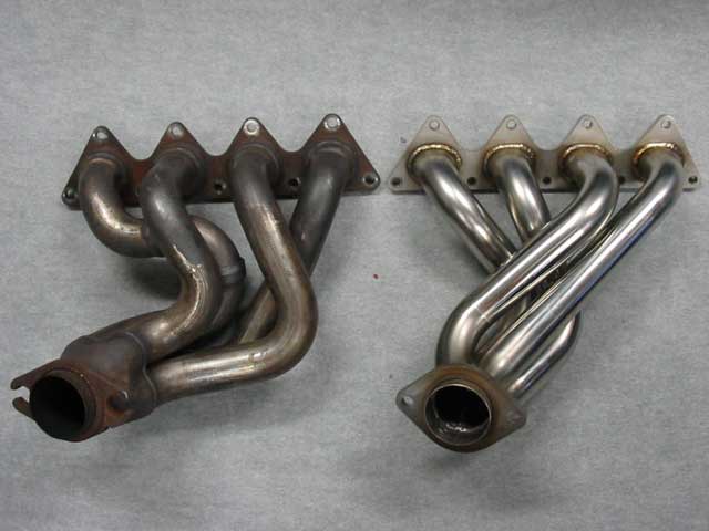 やっと出来上がってきました〜!苦節数年、随分前から欲しがっていたEXマニがついに出来上がって来ました。オールステンで鏡の様に顔も映ります(早く黄金色にせねば)等長でトルクも馬力もアップしてます。そして重さも!とってもダイエットしてます。純正が約7kgの所このエキマニは約4kgと3kgもダイエットに成功!(誰かさんも見習おうね!)。取付けもエンジンさえ冷えていれば2時間ちょっともあればOK!バンテェ−ジを巻いてRSのあつ〜いエンジンルームともおさらばですね。一応写真も取付前の単体写真、ノーマルと並んだ所、取付後の写真と見てみて下さい。