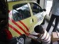 去年もステッカーデザインをしてくれたOさんちの息子さんのT君が今年もデザインをしたいって事でお母さんと共にカッティングシートと共にやって来ました。近頃はミニカーのカスタマイズ(バラして色塗ったりするらしい)にハマってるらしく、デザイン画もミニカーに書いてくれました。