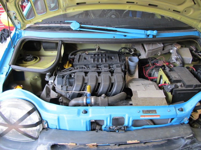 5年間共に闘って来た二代目トゥインゴ.....。3度に渡る大きなクラッシュで流石にボディに疲れが見えて来ました。某福岡ディーラーに貸出し中のレースでクラッシュしてしまい、フレームまで歪んでしまうという大怪我を負ってしまいました。