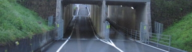 早朝の富士スピードウェイ。西ゲートからパドックに向かいます。