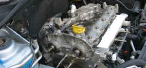 次にメインベルト→クランクプーリー〜(途中省略・カムプーリーも特殊工具必要)ヘッドカバーを外しついにカムシャフトを外します。そして運命の分かれ道!ヘッドを取り外します。