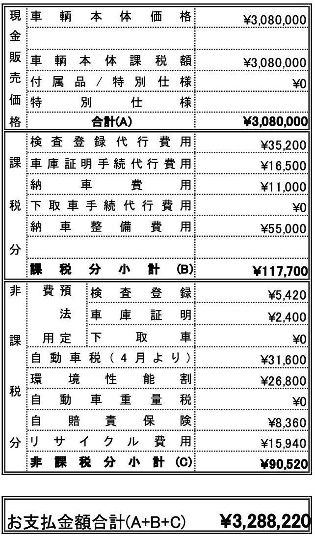 ご購入頂き弊社にて納車整備をご希望されるお客様に関しては、点検整備実施内容一覧に表記してある最大17品目の部品を交換・最大93項目を点検整備してからご納車させて頂きます。詳しくは点検整備実施内容一覧をご確認下さい。