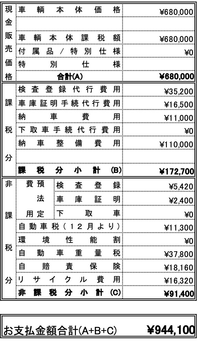 弊社ではご購入にさいして現金又は提携ローン会社によるオートローン(金利4.8%)がご利用頂けます。また車両本体価格(諸費用は除きます)のみVISAのクレジットカードがご利用頂けます。