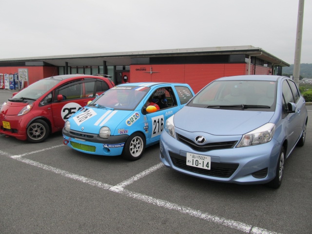 雨の東名を一路富士スピードウェイを目指して走ります。横浜は雨→厚木は小雨→秦野中井は曇り→御殿場も曇り→富士も曇り....。今日は営業Mはトゥインゴでのテストの他にレジェンドブルーとの天気対決も有るので大忙しです。