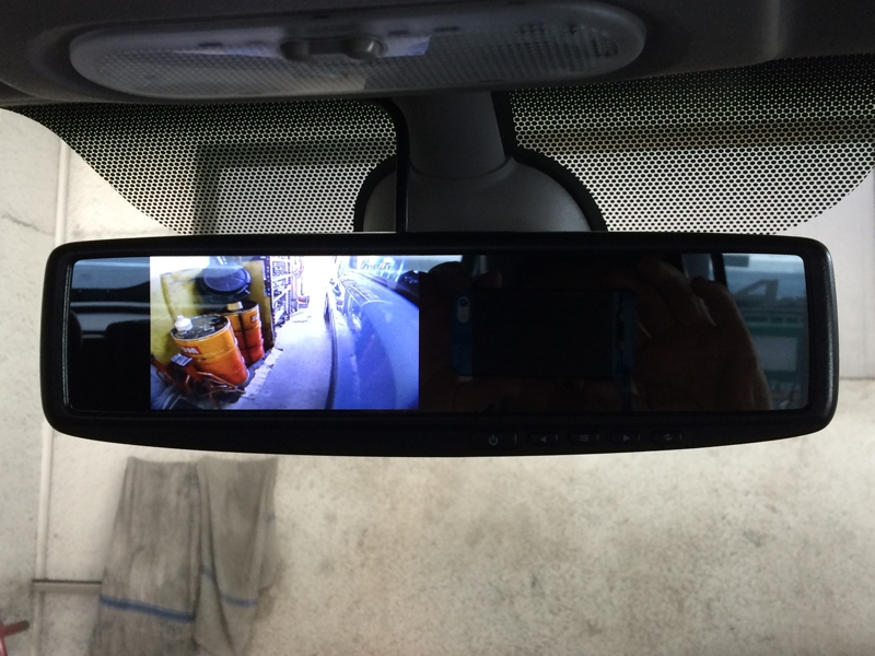 お〜!見える見える!リアカメラバッチリ!と前回と同じセリフが!でも前回との違いは廻りが明るくてもリアがバッチリ見える事ですね!普段はバックミラーにしか見えないんですが、ギアをバックにするとミラーの左側1/3がリアカメラに早変わり!