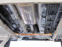 取付けた後に前方(エンジンルーム側)から下回りを撮ったところです。一番手前に見えるのはエンジンとミッションですね。取付け位置は丁度触媒の上になります。